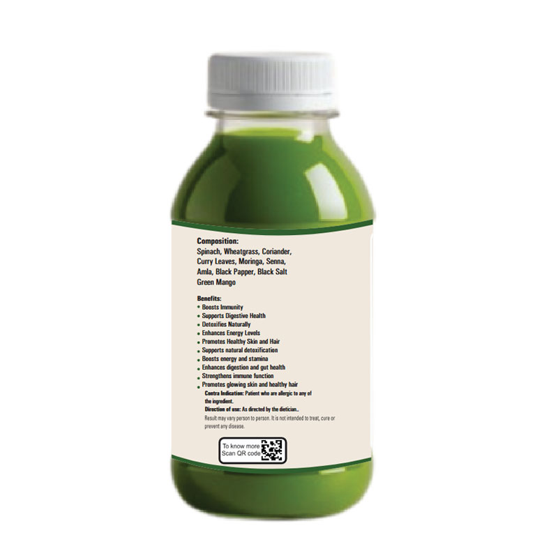 Spinach, Wheatgrass, Coriander, Curry Leaves, Moringa, Senna, Amla, Black Papper, Black Salt